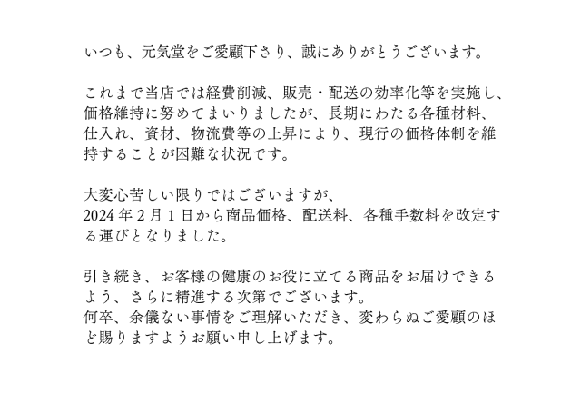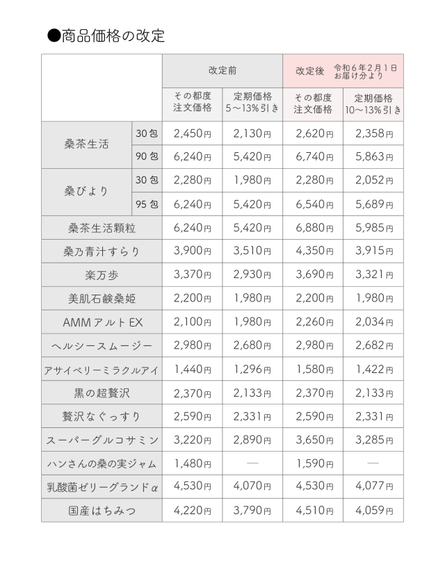 価格改定のお知らせ
